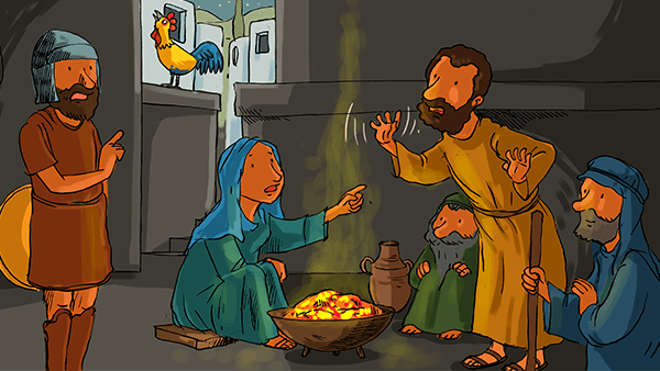Dans les Évangiles, l’exemple flagrant de ce mensonge est… celui de Pierre lui-même ! Dans la cour du grand prêtre, il se chauffe autour du brasero en essayant de suivre ce que devient Jésus arrêté et mis aux fers. Mais une servante le reconnaît. Devant le danger d’être traité comme son maître, Pierre nie avec force connaître Jésus. Et il en rajoute : « Il se mit à protester violemment et à jurer : “Je ne connais pas cet homme.” Et aussitôt un coq chanta » (Mt 26,74).